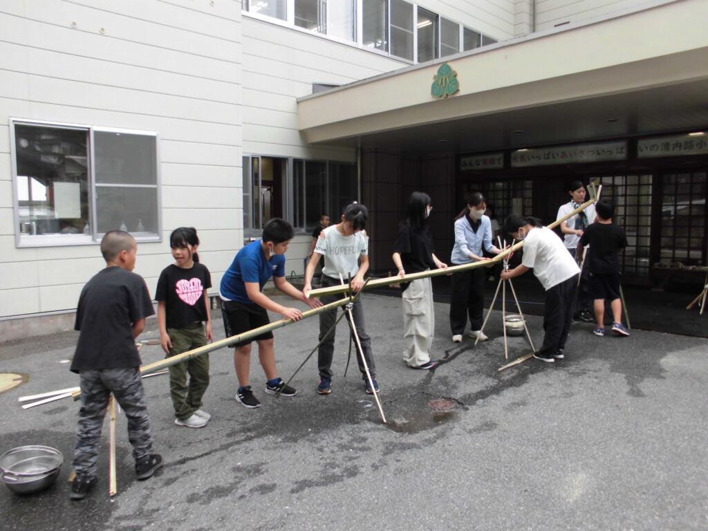 5.6年 流しそうめん 10月 20, 2025 最終更新日時 : 10月 20, 2025 清内路小学校 5・6年生は今年度総合的な学習の時間で、竹を中心に据えた活動をしています。地域の方にも協力していただき、お箸やお椀まで自分たちで手作りしました。試行錯誤を繰り返しながら、見事に流しそうめんを実現させることができました。