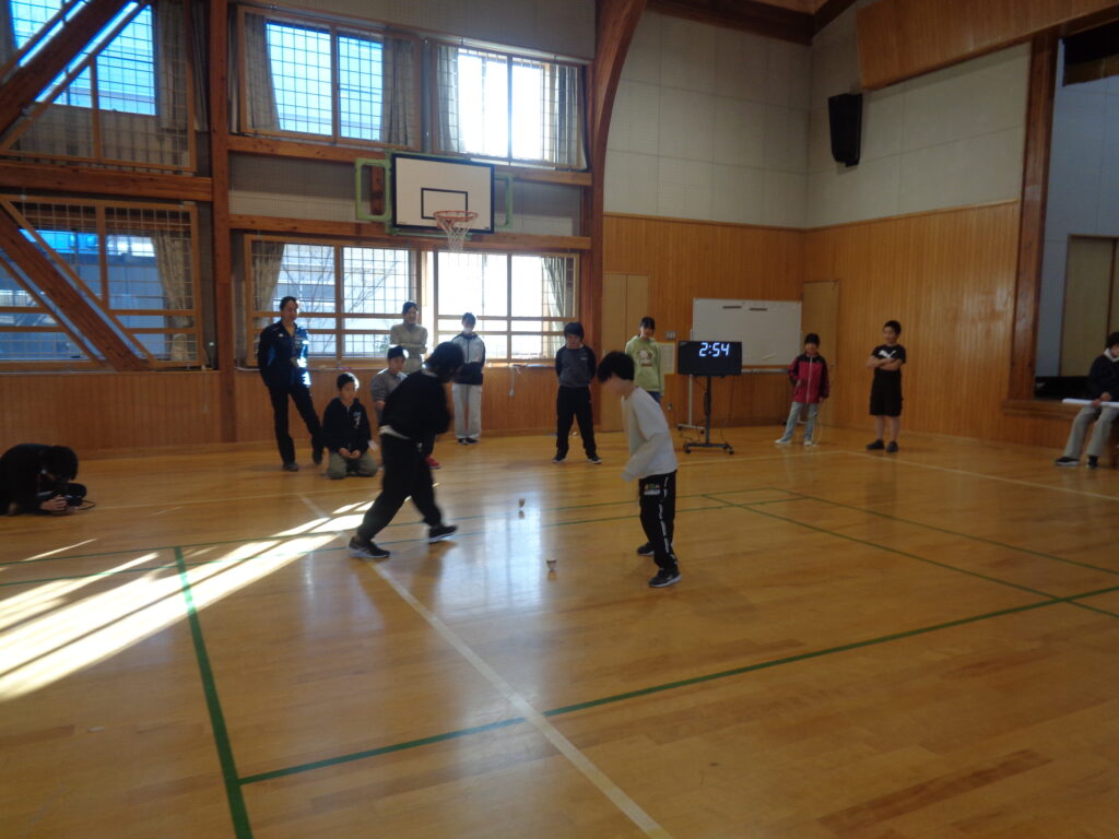 冬の遊び集会 12月 16, 2025 最終更新日時 : 12月 16, 2025 清内路小学校 12月15日に、児童会主催の「冬の遊び集会」が行われました。11月の親子レクで作ったたたきごまを使ってバトルをしました。最後まで残っていた人が勝ちの「対決」と、どれだけこまが回り続けるかを競う「持久」の2種目が行われました。どちらも白熱した勝負が繰り広げられていました。